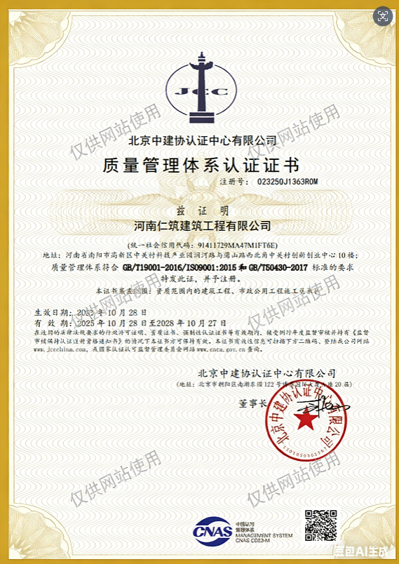 质量管理体系认证证书