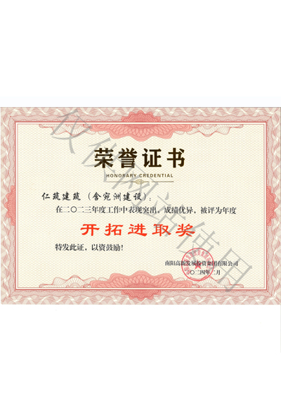2025年度开拓进取奖证书